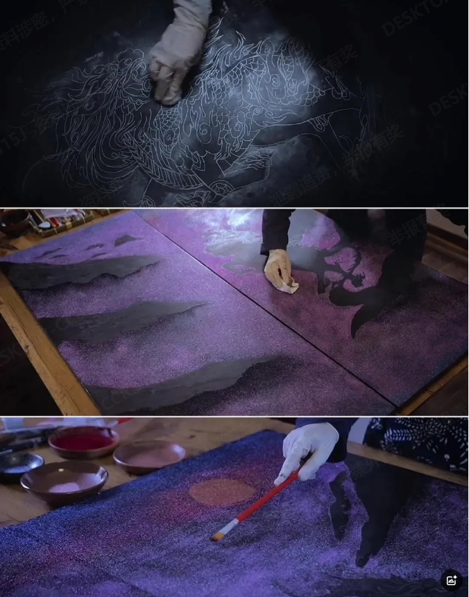 一個(gè)漆藝面板可以說是天成一半,人成一半,只有經(jīng)驗(yàn)豐富的漆藝師才能在“剛剛好”繪制成一張美麗動(dòng)人的面板。