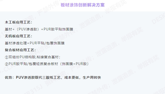 科技融合:將UV涂裝工藝與邦弗特獨(dú)立自主研發(fā)PUR膠、滲透膠、膜材等產(chǎn)品相結(jié)合,優(yōu)化工藝,降低成本。