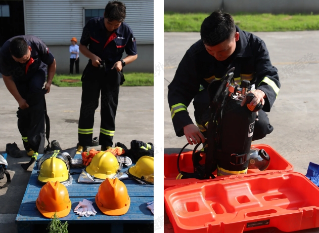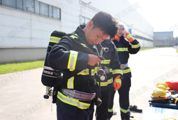 賽事以團隊形式展開,來自倉儲物流一線的九名骨干員工,組成三支精干隊伍同臺競技。嚴(yán)格模擬真實火場救援環(huán)境,設(shè)置了五項核心實戰(zhàn)科目:快速精準(zhǔn)穿戴個人防護裝備、熟練佩戴正壓式空氣呼吸器、高效連接消防水槍、精準(zhǔn)實施水槍噴射滅火、以及迅速搶救現(xiàn)場物資。