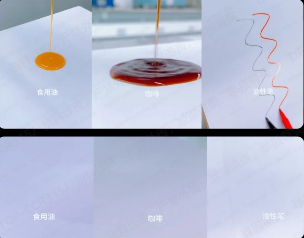 測試顯示,馬克筆涂畫、油漬等污漬一擦即凈
