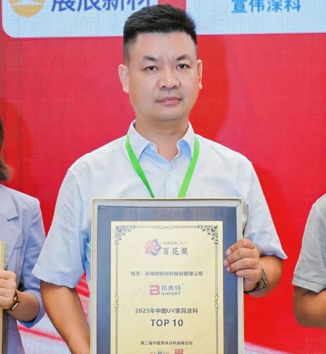 8月26日,佛山順德第二屆中國家具涂料高峰論壇傳來捷報(bào),邦弗特憑借卓越的綜合實(shí)力和創(chuàng)新能力,榮登"2025中國UV家具涂料TOP10"榜單,彰顯行業(yè)領(lǐng)軍地位。