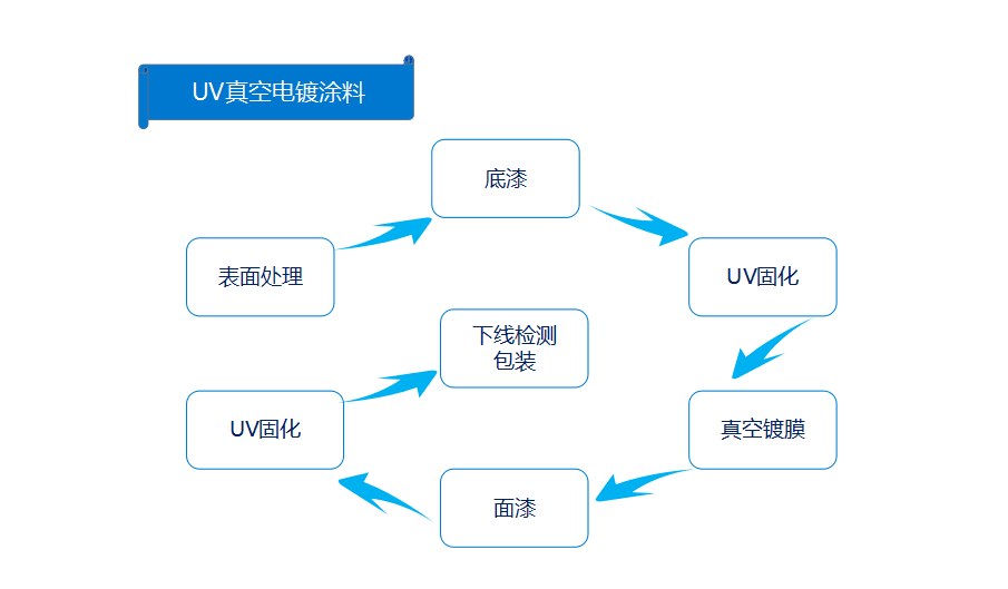表面處理——底漆——UV固化——真空鍍膜——面漆——UV固化——下線檢測(cè)包裝