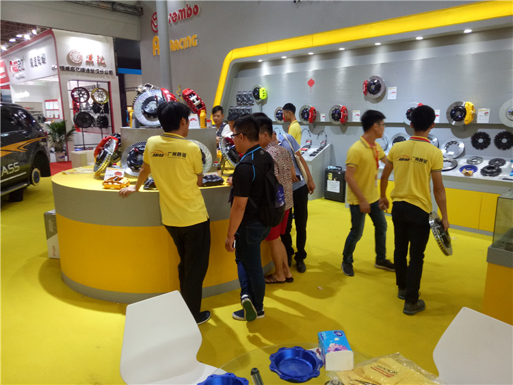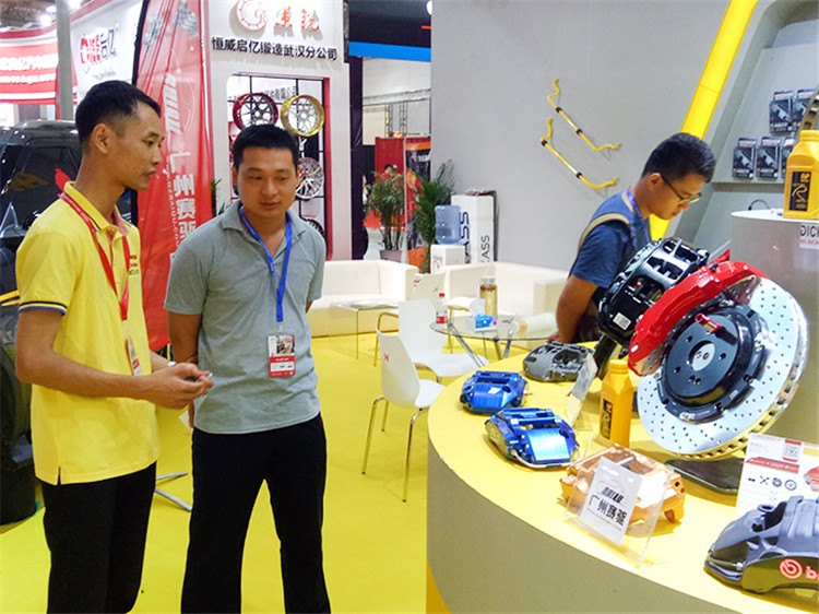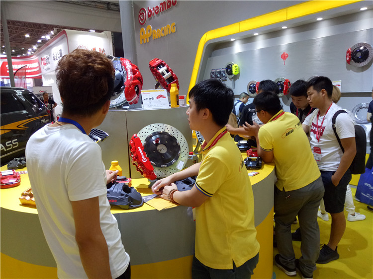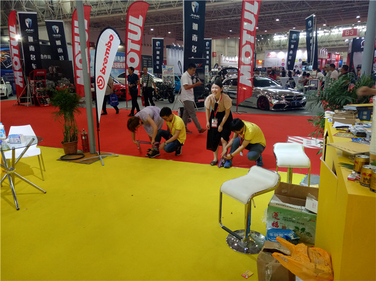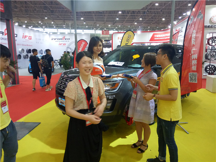 武漢UTS汽車改裝展會進入到第二天,由于適逢周末,現場人氣更加火爆,廣州賽驅的銷售精英依然堅持崗位,仔細對客戶進行產品講解!