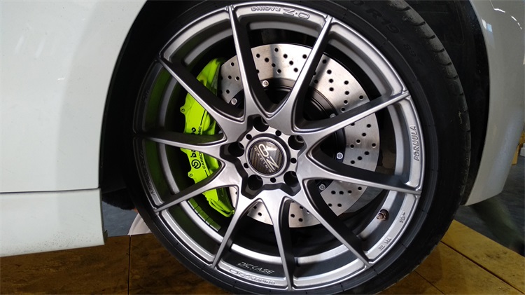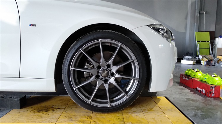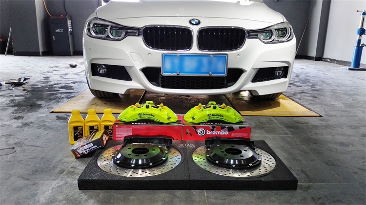 寶馬F35改裝前brembo V6六活塞,DICASE HP1000剎車皮,DICASE380*34MM打孔剎車盤。