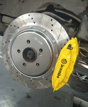 奔馳SL350 前面裝bremboV6六活塞搭配DICASE380孔線盤