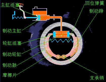 目前的小型車基本都采用液壓制動,因為液體是不能被壓縮的,能夠幾乎100%的傳遞動力,基本原理是駕駛員踩下剎車踏板,向剎車總泵中的剎車油施加壓力,液體將壓力通過管路傳遞到每個車輪剎車卡鉗的活塞上,活塞驅動剎車卡鉗夾緊剎車盤從而產生巨大摩擦力令車輛減速。