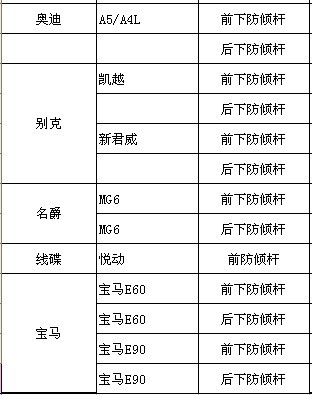 寶馬E60防傾桿、寶馬E90防傾桿、寶馬325防傾桿、寶馬318防傾桿、寶馬330防傾桿、寶馬518防傾桿、寶馬520防傾桿、寶馬523防傾桿、寶馬530防傾桿、寶馬X3防傾桿、寶馬X5防傾桿、寶馬X6防傾桿