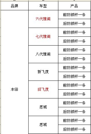老飛度防傾桿、老飛度防傾桿、鋒范防傾桿、思鉑睿防傾桿、八代思域防傾桿、九代思域防傾桿、雅閣防傾桿、八代雅閣防傾桿、本田CRV防傾桿、奧德賽防傾桿、