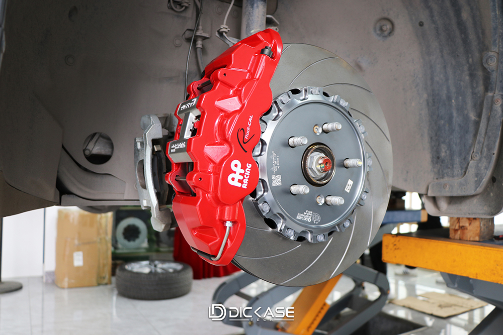 前置選用英國(guó)AP8520大六活塞卡鉗套裝,后置選用國(guó)產(chǎn)DICASE D42小四活塞卡鉗+電機(jī),為什么會(huì)出現(xiàn)這種混血配置呢?