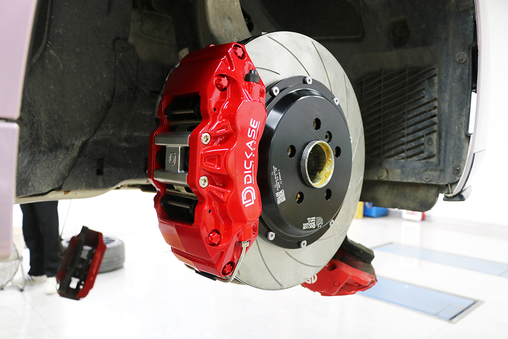 寶馬5系升級DICASE A61六活塞剎車套裝,車主在升級dicase卡鉗之前,就花了不少錢去升級了一套Brembo六活塞卡鉗,但剎車時有明顯的剎車抖動的情況,為了解決這個問題,車主打算更換我們dicase剎車套裝試試。