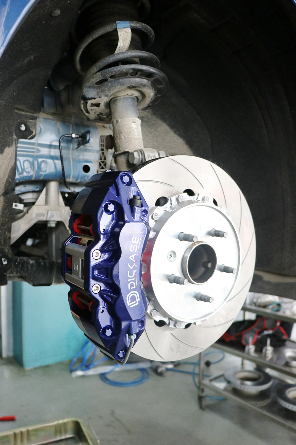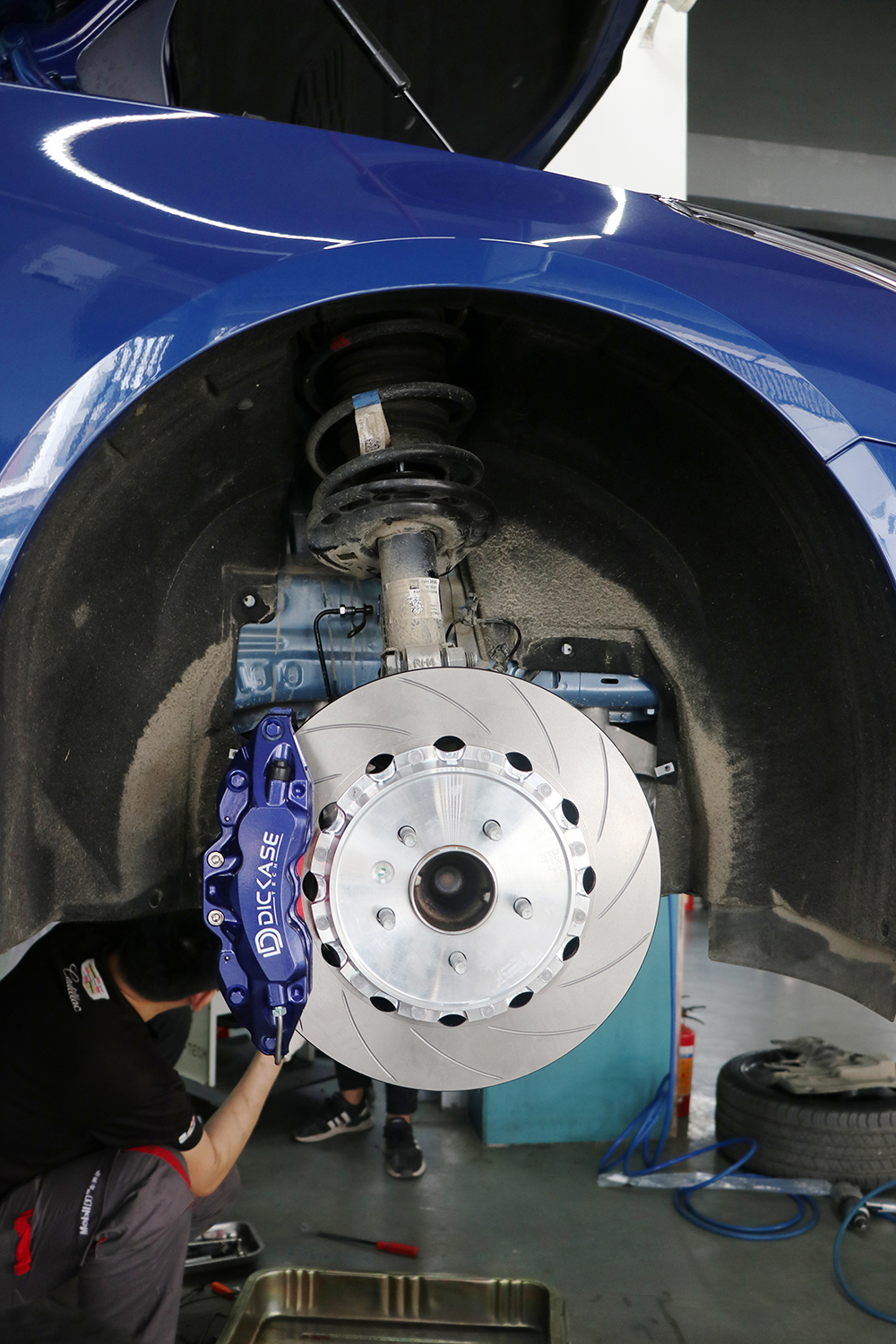 凱迪拉克CT4這樣升級帥到炸,因為車身是藍色的所以車主剎車也選擇了一個藍色,選用跑山級別剎車片,制動性能更佳迅猛,這款車型升級時需要注意排空時需要熄火操作,不然會出現故障碼。