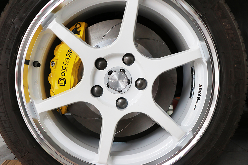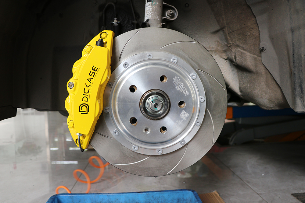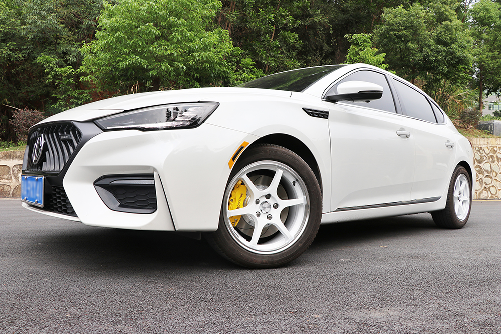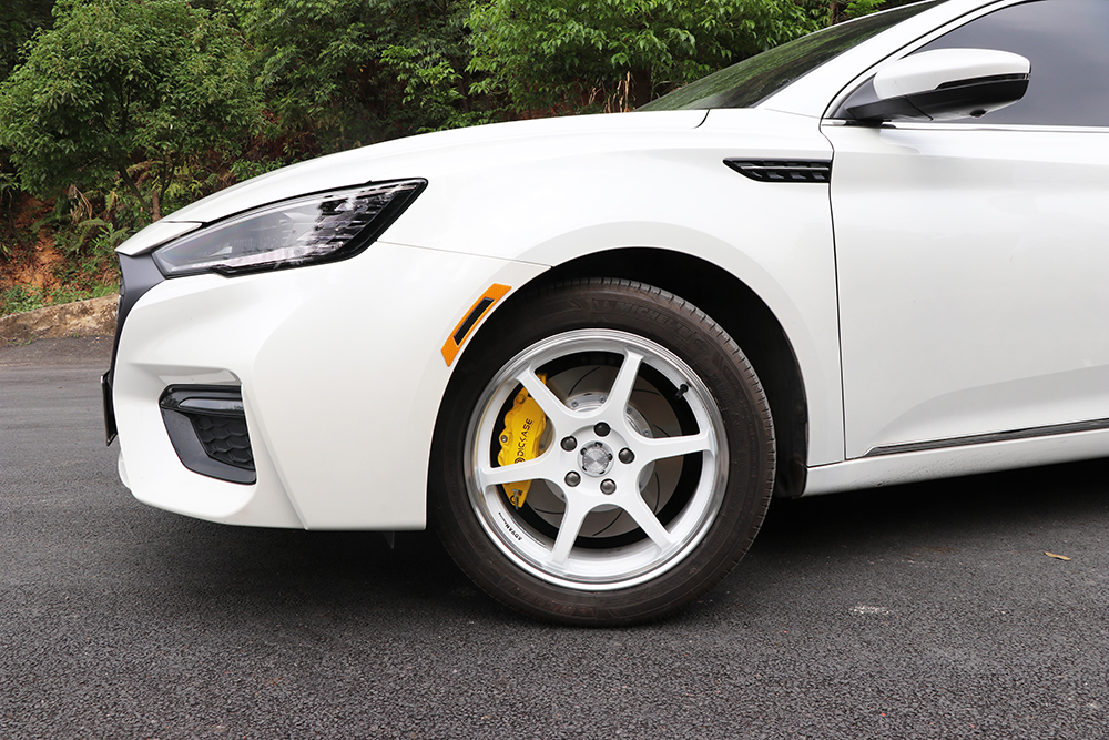 名爵6剎車升級(jí)案例,17寸改裝輪轂,選用的是DICASE大四活塞剎車卡鉗,搭配hp1000剎車皮,DICASE全新升級(jí)的防爆鋼喉,330劃線剎車盤。