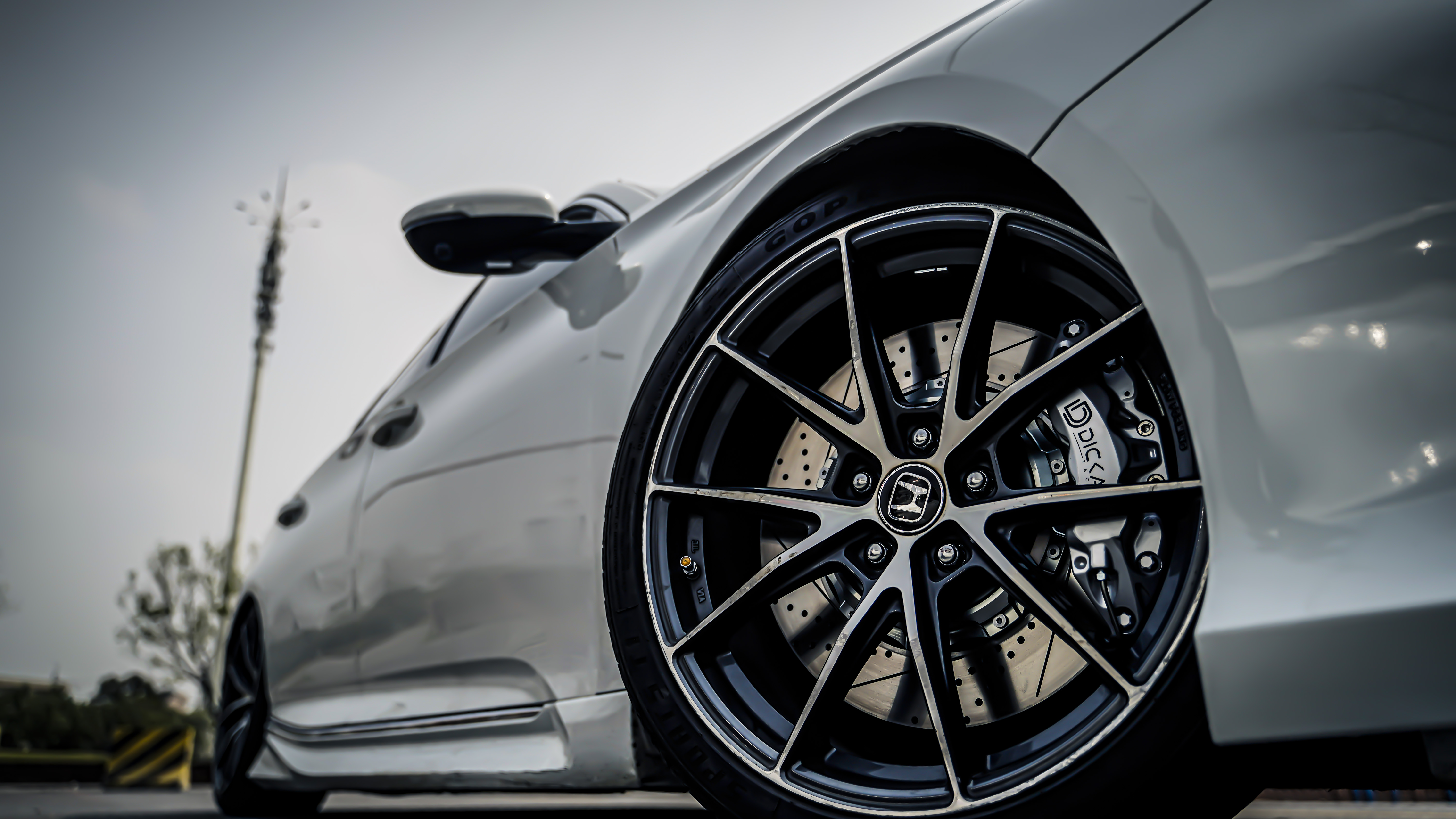 安裝的這款dicase-Knight-D61,輕量化設計,鍛造剎車卡鉗,具備優異性能,腳感靈敏、線性,讓用戶心無所懼的加速前行是迪卡司品牌獨有特性,裝上金屬銀卡鉗,讓改裝后的雅閣瞬間成為焦點。