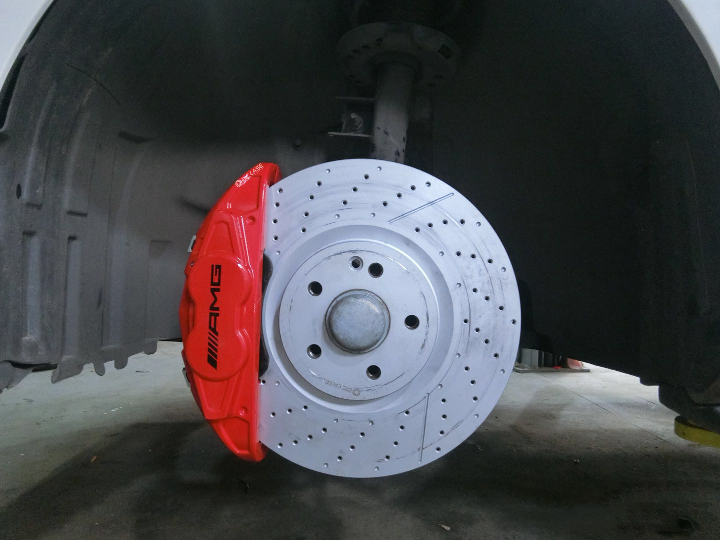 AMG卡鉗的改裝的標(biāo)志象征著性能的升級,小小的改動,大大的提升,AMG奔馳的尊享身份不滿足于此,或是為了完整度,車主又打算在這輛車的基礎(chǔ)上直裝330mm的加大盤打孔加劃線的剎車盤。